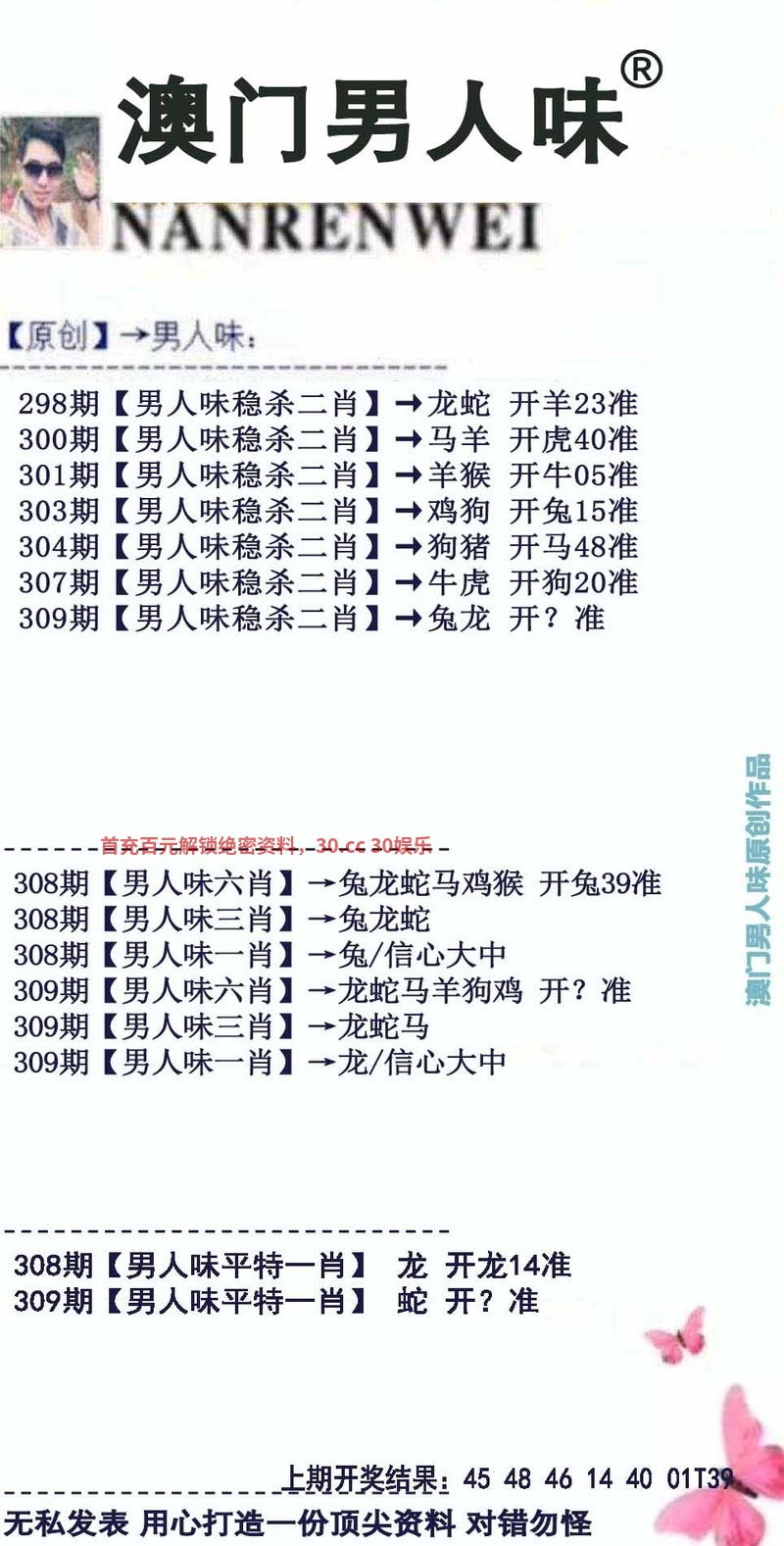 310期:三头中特≤2头3头4头≥开:發00准